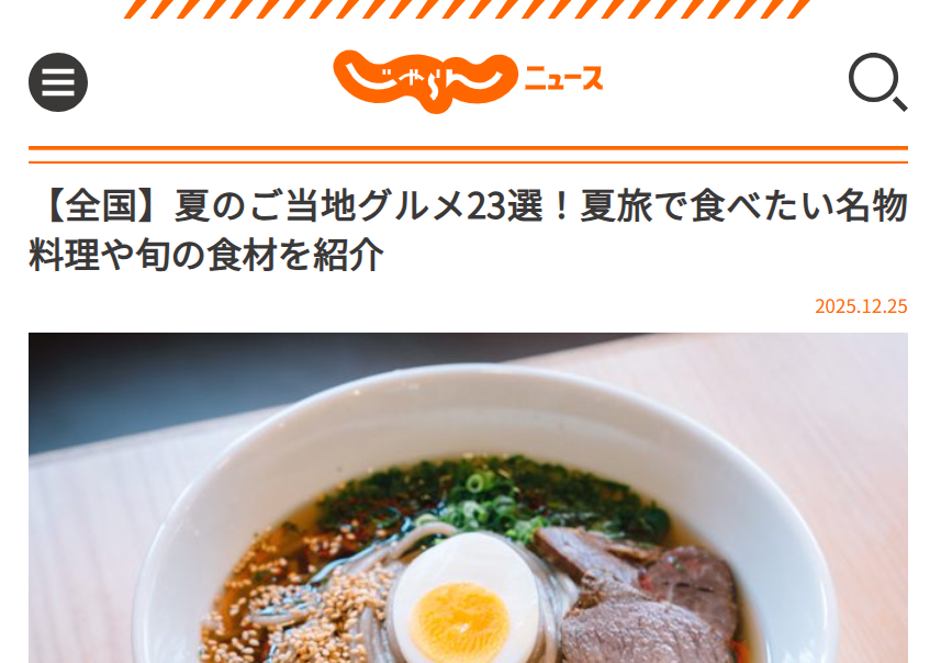 じゃらんニュースにて、【全国】夏のご当地グルメ特集が掲載されました。なごやめしも紹介されています!